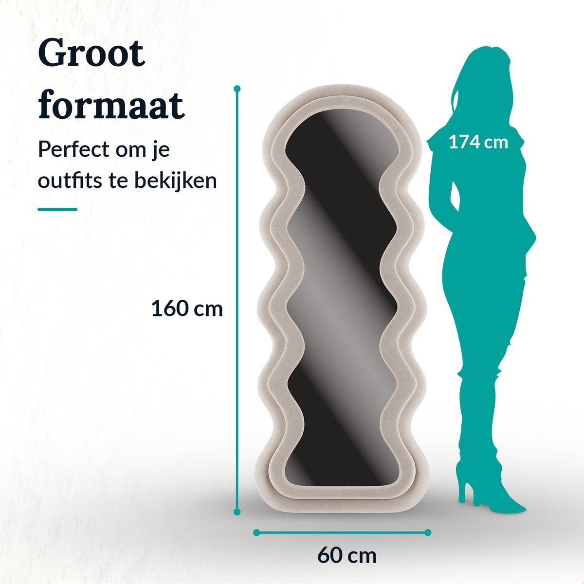 Met zijn royale afmeting van 160 x 60 cm is de Wavy Spiegel ideaal voor een volledige outfit-check of om extra diepte en licht in de kamer te brengen.